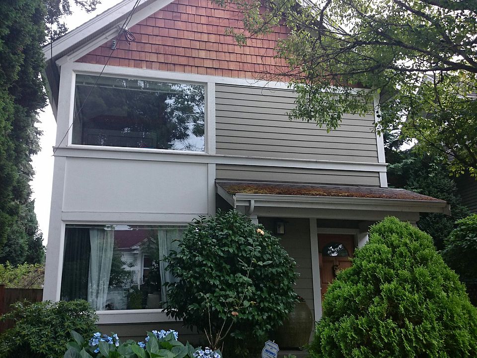 Perfectly located, amazing, three level view home, 4 blocks to Green Lake, & 3 blocks to Greenwood Ave. This home really has it all! Walk in to beautiful main floor, featuring open living spaces, fireplace, tons of light, & designer finishes. Large bedroom on main also works as family/bonus room. Upstairs features master with view deck, 2nd bedroom/office, 3rd bedroom or bonus room, & laundry room.Third floor with office landing, & large flex room opens to deck with hot tub, & Rainier & city views. Tons of storage, great schools, 1 parking spot.