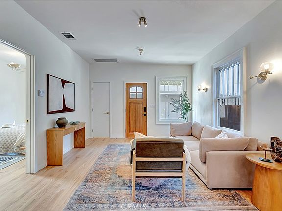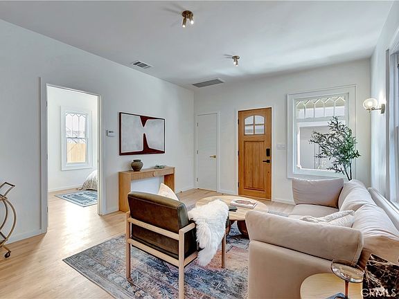 $50K GRANT AVAILABLE for this property! WALK to the WATERFRONT and DOWNTOWN Long Beach! Enjoy top-of-the-line, breathtaking luxury in this FULLY RENOVATED, stunningly designed historic Willmore City home in Long Beach with NEW electrical, NEW plumbing, NEW HVAC, and NEW roof. As you enter, you are greeted by a covered front porch, perfect for relaxing with a morning coffee or afternoon tea. The interior is a showstopper with so many custom built-in features painstakingly designed and installed - bespoke mid-century modern brass fixtures, pristine new hardwood floors throughout, real marble counters, and custom woodwork like pocket-doors, tasteful shelving and a built in dining bench that make the best use of every square inch of the home. The kitchen is a chef's playground with beautiful marble countertops, custom minimalist cabinets, new stainless appliances including KitchenAid fridge and range/oven, paneled Bosch dishwasher, and smart additions like a pot filler below the exterior vented range hood to delight chefs of all levels. A custom dining bench by the window adds functionality with style. Two spacious bedrooms offer privacy, both with their own ensuite bathrooms. Gorgeous dimmable light fixtures with brass light switches flank the bed, with an elegant custom pocket sliding door to the bathroom for just enough separation. The bathrooms dazzle with marble counters, wall-mounted faucets, durable hexagonal terrazzo floors, custom shelving and dual rain shower and handheld shower options. One features a sleek frameless glass wet room with smooth Santa Barbara waterproof stucco, the other a deep soaking tub with statement vertical tile. Finally, step into your backyard oasis - a finished patio with automatic solar powered bohemian lights that transforms this space into a stylish lounge to enjoy your digestifs with a loved one. Parking is easy with an attached one-car garage plus space for two more vehicles. The location is unbeatable - just over a mile to the waterfront, 94 WALK SCORE, and surrounded by restaurants, shops, and the Metro to LA. There are no HOA fees or Mello-Roos taxes to eat into your budget. If you have been looking for a beautifully designed single family home with amazing walkability, this home has everything you want and more!
