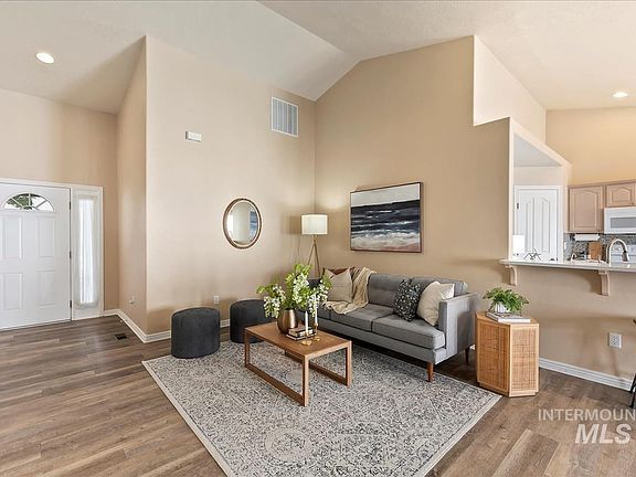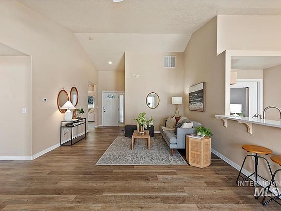 Just 1 mile from downtown Eagle, this charming townhome offers not only zero-maintenance living, but also a lifestyle to be desired. Take a short walk, bike ride or peaceful drive to enjoy the lively farmer’s markets, local restaurants and shops in downtown Eagle. Residents of the serene, gated 55+ community of Senior Creek are also welcome to join in activities at nearby Paramount Park. Boasting 3' doors for easy accessibility, this ADA-compliant townhome offers an open floorplan with a spacious great room and soaring ceilings, ideal for comfortable living and entertaining. Enjoy the north-facing covered patio perfect for relaxation. The HOA ensures a hassle-free lifestyle by covering landscaping maintenance (including flower beds and pruning), pond upkeep, irrigation, snow removal, paving, and gated entrance security. Embrace the ease and tranquility of this exceptional townhome and community.