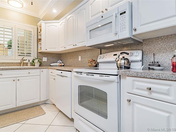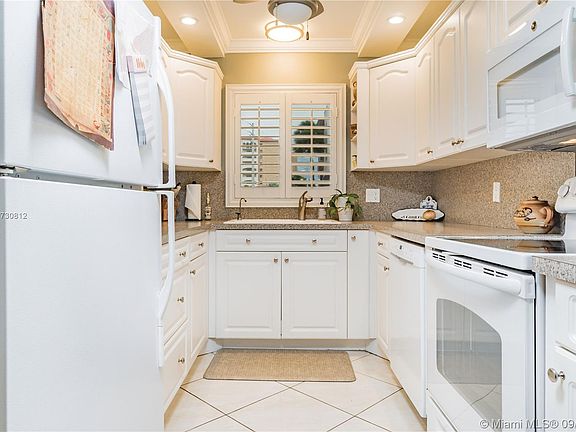 Immaculate 2/2 co-op is ready to move in! Property features updated kitchen, ceramic tile and laminate wood floors, redone baths, beautiful water and pool view from enclosed patio and so much more. Make this your home today!