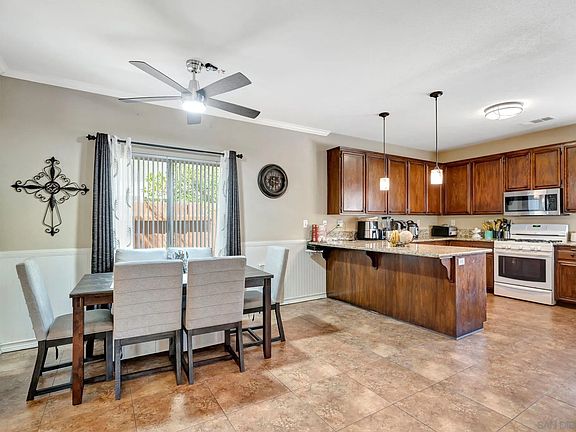 Turn-key 3BR/2.5 BA in desirable 'Granite Hills' of El Cajon! Home is decorated w/ all neutral decor & features an upgraded kitchen w/ granite slab countertops & lots of storage cabinets, recessed/ custom lighting fixtures, ceramic tile & laminate wood flooring throughout the entire floor-plan, upgraded crown moulding/ baseboards & more! This home really shows light & bright, allowing for lots of natural light throughout the interior. Other features include Central A/C system & ceiling fans in every room for cooling & the private, enclosed backyard gives peace and quiet for outdoor dining or just relaxing underneath the covered patio w/ overhead fan. A pet door along the side of the home also allows your pets easy access in & out directly into the enclosed backyard area while you're away. Enjoy the 2-Car direct-access, attached garage w/ full-size laundry & extra storage for convenience. Property sits inside a private community w/ very little ‘thru' traffic & plenty of off-street parking for its’ residents & guests sitting just outside the home. Low HOA fee of $120/mo. includes water & sewer, weekly front yard landscape maintenance of the home & all common area(s) maintenance inside the neighborhood. Located conveniently close to El Cajon community shopping & dining, neighborhood parks & schools for all ages w/ I-8 freeway access nearby.