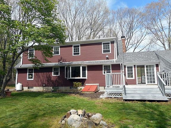 Custom oversized full shed dormered cape. Huge kitchen w moveable peninsula, recent cabinet face refresh and new quartz counters. Recent ss appliances w beautiful Anderson bow window overlooking private rear yard which abuts 10 acres of conservation land. Hardwoods in all rooms except kitchen and baths. Built in shelving/mantle in living room and built inside in master bedroom. Two functional woodstoves (one fireplace box insert and one in basement. 7.4Kw solar system with Resu10 battery for emergency backup. Ducted heat pump for heating and cooling with 1 primary full house zone and 2 ducted mini-splits separately zoned in upstairs bedrooms. Finished lower level family room plus 2nd finished storage room, unfinished laundry and workroom. Convenient location minutes to shopping, mbta, highway and Bearcroft swim club, Finberg Field.