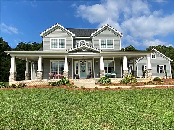 Gorgeous Home Built in 2018 on 11.32+- Acres in Pilot Mountain- Open Floor Plan on Main level features kitchen w/island, Den with fireplace/gas logs, Dining, Living or Office, Primary Bedroom w/Primary Bath, Full Bath, Laundry room, Pantry-2nd floor features 3 bedrooms-Bonus room and 2 Baths. 3 bay garage-See pictures and Matter port to view special features in home such as custom built millwork around fireplace, built in seating in breakfast nook, Solid surface quartz tops in Kitchen/Primary bath, double oven, five burner propane cafe' cook top, stainless refrigerator, walk in pantry-gas logs- cook top and water heater. Much more! Why build when you can move into this beautiful home!