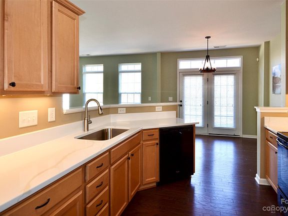Impeccable End-Unit Townhome in Palmetto Trace is located in a desirable part of Fort Mill! Recently updated with engineered hardwoods throughout the main level, board & batten accented walls added in the formal dining room, updated lighting & plumbing fixtures, and new hot water heater. Calacatta Roma Gold Quartz kitchen countertops were just installed! This property has a very functional floorplan with kitchen that is open to the breakfast nook & large family room. Upstairs you'll find a large primary ensuite with 2 walk-in closets, trey ceiling, dual vanities, updated ceramic tile and garden tub. Secondary bedrooms are also very spacious. Backyard is semi private and backs up to a huge natural area that will never be built on. HOA includes Exterior Maintenance, Roof, Lawn Maintenance and water for irrigation! Your modern conveniences, dining and interstate highway access are only minutes away with just a short commute! Move-In Ready!