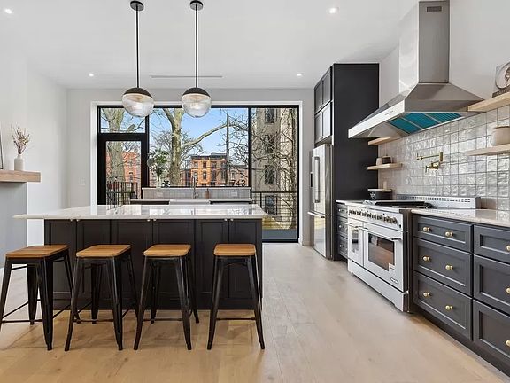 Located on a beautiful tree-lined block within Stuyvesant Heights, this three-family brownstone is a charmer that mixes modern sensibility with income-producing units. Newly renovated, the four-story townhouse at 743 Putnam Avenue is configured as two rental units over an owner's duplex, which has full private access to both the finished cellar and backyard. The owner's parlor floor opens into a stunningly spacious open-plan living/dining room that extends into the chef's kitchen. The open layout allows plenty of natural light to beam through from both front south-facing windows and rear floor-to-ceiling windows. The 9'8" ceilings, 48" professional stove with double oven, high-end appliances, and the north-facing deck and garden are additional highlights. The garden floor has three bedrooms and two bathrooms. The master faces the quiet backyard, with an en-suite bath, and features a double sink and walk-in shower. The garden level seamlessly connects to the fully finished cellar which can be a great open space for a TV room and home gym. The owner's unit has a central heating/cooling system. The third and fourth floors are two fully renovated rental units. Both units have two spacious bedrooms, stainless steel kitchen appliances, a modern bathroom, an in-unit washer/dryer, split heating and cooling, and ample space for entertaining. Both units are flooded with sunlight, especially the top floor unit with multiple skylights. Separate utilities. The house is just minutes walk from the express A/C Train at the Utica stop and local favorites such as Saraghina, Chez Oscar, Tradroom.. etc.