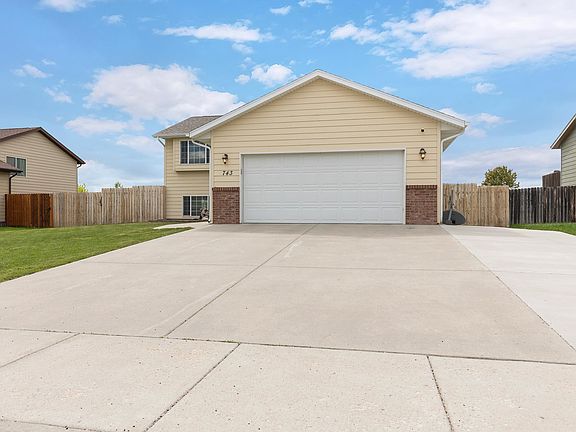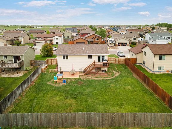 Listed by Cody Brown, Engel & Voelkers Black Hills, 402-910-3553. Stop what you are doing and check this out! This home, located in Box Elder, has three bedrooms, two bathrooms and a double car garage. The upper level of the home has two bedrooms, a bathroom, an open concept living room, dining room, and kitchen area with vaulted ceilings. There is a walk out from the dining room to the deck/backyard. The lower level of the home has a family room, master bedroom/shared master bathroom (with jet tub), and the utility/laundry room. This home has a two-stall attached garage, extra room for parking on the side of the garage (paved), and a fenced in backyard with stained concrete patio.