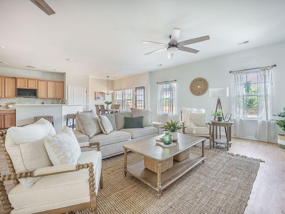 Welcome to 743 Redbud Lane, a beautifully upgraded 4-bedroom, 2.5-bathroom home located in the sought-after Lindera Preserve at Cane Bay Plantation. This meticulously maintained residence offers the perfect blend of comfort, style, and convenience just minutes from shopping, dining, schools, and healthcare. Step inside to discover elegant finishes throughout, including quartz countertops, stainless steel appliances, a charming breakfast nook, and modern light fixtures. The open-concept layout flows seamlessly to the covered back patio and brick paver walkway, creating the ideal space for indoor-outdoor living. Upstairs, you'll find all four spacious bedrooms, two full baths, and a versatile loft area perfect for a media room, home office, or play space. The fully fenced backyardoffers privacy and room to relax, entertain, or let pets roam freely. Located in the heart of Cane Bay, Lindera Preserve offers resort-style amenities, including community pools, a dog park, and miles of scenic walking and jogging trails. Residents enjoy access to the local YMCA, youth sports, and a vibrant golf cart-friendly lifestyle with schools, restaurants, and daily conveniences all within a short ride. Don't miss your chance to live in one of the Lowcountry's most desirable master-planned communities schedule your showing today!