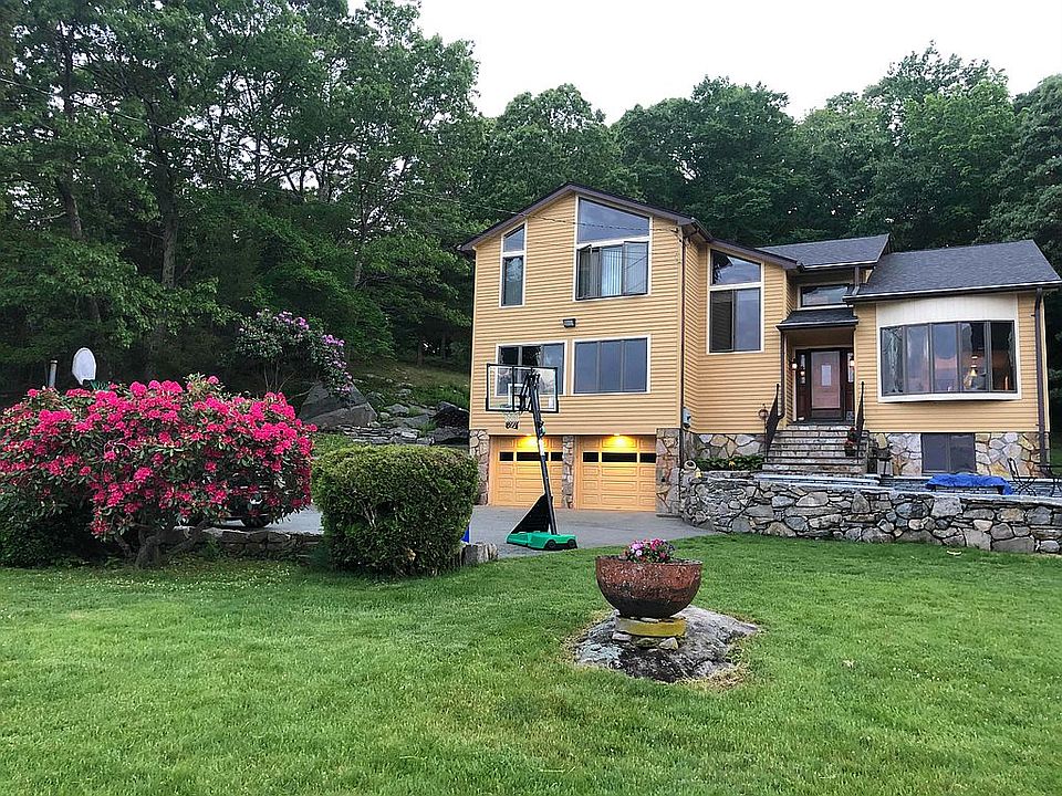 Waterfront beauty! Peaceful setting with sunrise views over the Mystic River on scenic road. 4 bedroom, 2.5 baths, 2748 sq. ft. and water views from all over the house. Grand 2 story entryway, open floor plan, hardwood flooring, lots of windows. Spacious kitchen has double ovens and eat-in area. Formal dining room with cathedral ceiling, perfect for entertaining. Family room with high ceiling and beautiful brick fireplace to relax by. Large master bedroom with full bath and walk-in closet. Basement with walk-out and attached 2 car garage.