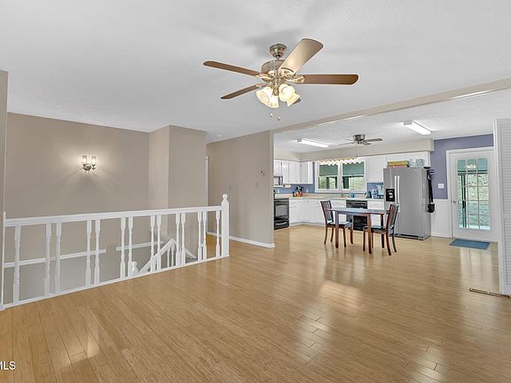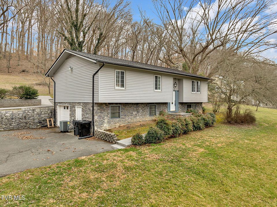 Located minutes from J.C. & Kingsport and Interstate 26 . Beautiful views and spacious living with tons of storage with this lovely home! Check out this large split foyer home on a quiet street, with 2.17 acres! Home features 3BR, 3BA, open living room/kitchen design. All appliances convey -with exception of washer/dryer. There is a large pantry as well as w/d hook-ups, on main level. Off of the kitchen features a large, enclosed sunroom with new, concreted, stamped flooring-perfect for reading a book, and watching the deer play and graze in the back yard. Newer bamboo flooring has been installed on the main level of the home as well! Downstairs there is a large family room, plus a full bath downstairs-with large, under the stair storage. Attached 1 car, drive under garage features shelving and plenty of storage including large, cedar closet. New hot water heater installed as well. Also featured, is a large, encapsulated 22 x 32 detached garage, with epoxied flooring-perfect for the car enthusiast or hobbyist.