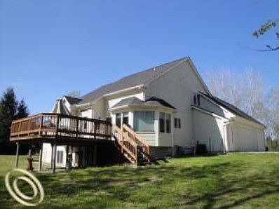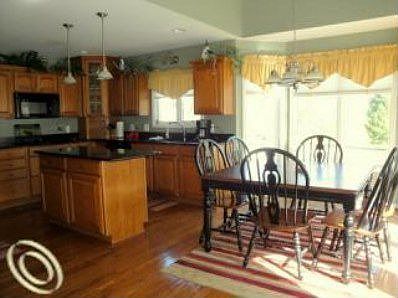 Beautiful 2 story home on 5 great acres with perfect setting. Features open floor plan w/large living w/stone fireplace, formal dining w/crown moldings, kitchen w/granite counters/ maple cabinets/center island/ wood floors w/nook with bow windows, study w French doors, large master suite w/his & hers closets& large bthrm, finished basement with daylight windows, large deck, 3 car garage and 40 x 30 pole barn w/electric & water.