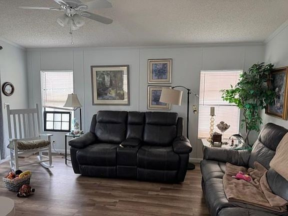 This home has been renovated in 2019 and now has a open concept lay out. It is a 2/2 with all updated appliances stainless sink and the A/C is brand new. It sits at the end of the community boosting serenity. All beautiful flooring has been added along with bathroom vanities and commodes. This home is sold with nice furniture and all decorations. The large screened in room in the front of the house for those fresh Florida evenings. Stackable laundry is located in the large shed attached to the home.