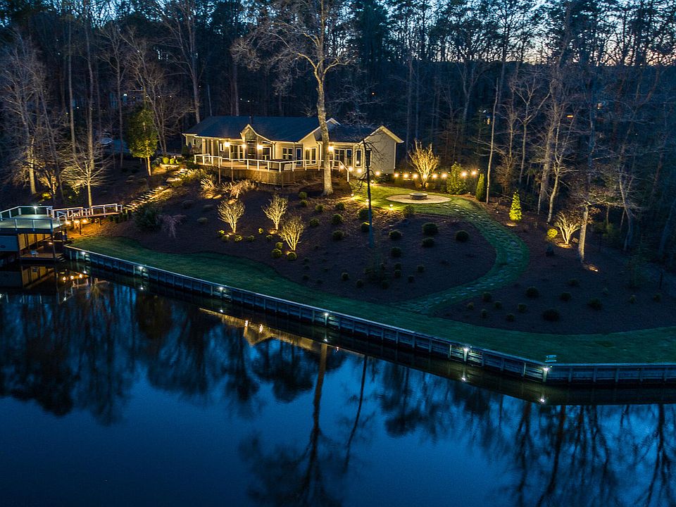 ABSOLUTLEY STUNNING LAKE FRONT WITH A PANORAMIC VIEW OF THE LAKE!! Check out this Custom ranch homes sitting on approx. 1.27 aces with over 340 ft of lake shoreline! Professionally design landscaped yard with Zoysia lawn and complete irrigation system! Landscaping lights & up lighting throughout. Check out the custom stone firepit over looking the lake! Or sit in the Hot Tub on upper deck and enjoy the lake view! Don't forget to walk down to the Double decker-boat dock that features a remote control boatlift cover for a Pontoon or ski-boat. Floating dock for a Jet-ski! then go up top of the boat dock and enjoy the sun! The home features Professionally tinted windows on the lakeside windows! Rear & lakeside fenced yard! New roof 2017, New Heat pumps 2020- main unit and 2021 second unit. New split heat/ac system installed 2022 for 2 Rooms w/ 452 sqft off oversize double car garage that could be used as an in-law suite or office/ gym This area is included in total sqft of home. Home is wired w/ generator panel & automatic transfer switch for a backup generator. Main bedroom bath has heated floors & heated toilet seat! Bonus room off the custom kitchen could be used as a 4th bedroom. This is a MUST SEE HOME!!