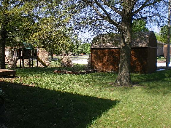 3 Bedroom could be 4 2 Bath Full finished basement corner lot with mature shade covered front porch two car garage large storage shed and a playground set all on edge of town Check out Osage City it has a lot to offer.