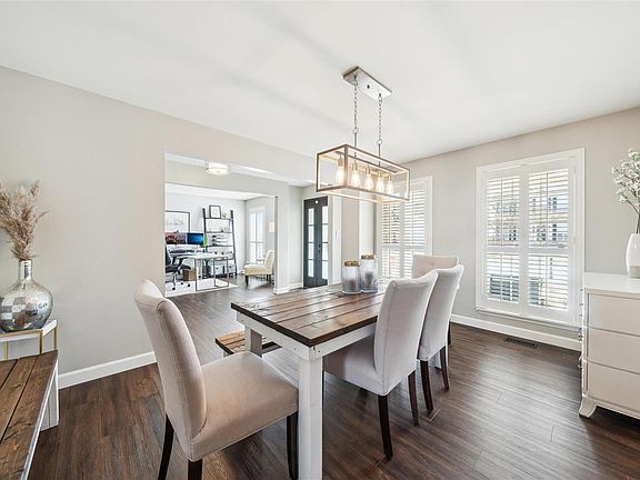 Incredible 2-Story w/partial brick front,covered front porch & major updates in sought-after Summit Heights/Lindbergh Schools!4 beds,2.5 baths & 2,472sqft of living space.Paned entry door opens to office/dining room w/plantation blinds & new luxury vinyl plank flowing through first level into living room w/built-in bookcases,bay window & WB fireplace.Updated kitchen cabinets w/crown,over/under cabinet lighting,gas range,granite,custom backsplash,pantry,plantation blind,recessed lighting w/breakfast room w/new slider opening to freshly stained deck overlooking level fenced yard backing to common ground/woods.Updated powder room/main floor laundry.Spindled rear stairwell w/shiplap hallways lead to primary suite w/walk-in closet,updated bath w/raised dual vanity w/quartz counter,porcelain flooring,soaking tub,separate shower & plantation blind.3 bedrooms & updated hall bath complete upper level.Updates:newer carpet/pad,light fixtures,lever style door hardware,aluminum fence,HVAC(2022).