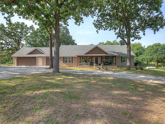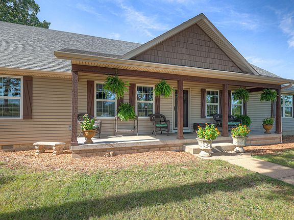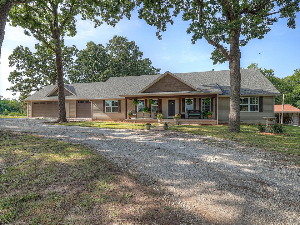 The perfect mix of rustic & cozy to make you feel at home! Situated on 2.54 acres, this 3-bedroom, 3-bathroom remodeled ranch has everything you're looking for! Open kitchen & living room floorplan with cathedral ceilings in the living room with wood burning rock exterior fireplace and office off of living room. This fully appliance kitchen with granite counter-tops & kitchen island includes all top-of-the-line Kitchen Aid appliances including a convection cook-top that boils water in less than 2 minutes. Large primary bedroom with walk-in closet and ensuite bathroom that includes granite counter-tops, walk-in tiled shower and jetted tub. Large utility/mudroom with full bathroom off kitchen; Includes radiant heated floors in 3 car attached garage. 56x24 shop with electricity as well as garage door & 2 car carport; 36x66 Lean To behind home. Home includes optimum high-speed internet as well as 2 heating sources (propane & radiant heat with outdoor water stove). Home is located off I-44 between Joplin & Carthage.