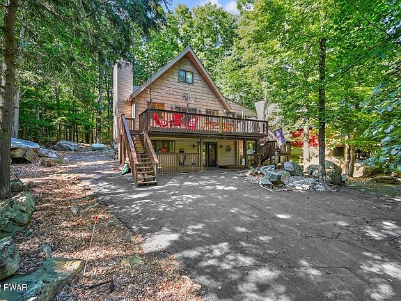 This beautiful chalet home is in a great location in the Gold star amenity rich, four season community of The Hideout! Located in the 'Lake Region of the Northern Poconos', just two hours from the NY, NJ and Philadelphia Areas. This is a well maintained and loved home featuring an open floor plan, wood burning and propane stove, 4 season sunroom, propane heat, finished basement, beautiful front deck, 5 mini split ductless A/C - heat units, and so much more ! This home is a MUST SEE ! Most furnishings are included in the sale. The amenities include lakes, beaches, pools, clubhouse with restaurant and pub, golf course, Beds Description: 2+BED 2nd, Beds Description: 1BedLL, Beds Description: 1Bed1st, Baths: 1 Bath Level 1, Baths: 1 Bath Level 2, Baths: 1/2 Bath Lev L, Sewer: WS Comm Central
