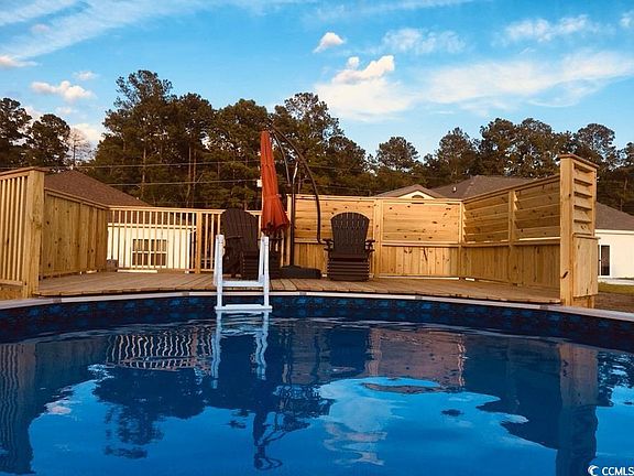 Magnificent home built in 2022 with a swimming pool, located on 1.03 acres just off Hwy 22 between Aynor and Conway and there's no HOA. This 3BR/2BA home is absolutely stunning. Spacious open floor plan boasts a huge living room, kitchen, and dining room which is the perfect place to entertain family and friends. The focal point of the living room is an impressive fireplace featuring breathtaking natural stone from the floor to the top of the ceiling and its complete with a beautiful mantel. The gourmet kitchen has quality details throughout, with modern and fashion forward designs featuring 42 inch white cabinets, upgraded granite counter tops, and a farm style stainless steel sink. A spacious island with plenty of room to prepare meals also serves as a gigantic breakfast bar with lots of storage. The stainless steel appliances. include: range, refrigerator, dishwasher and a microwave. The dining area overlooks the sprawling backyard and its the perfect place for friends and family to gather and share a home cooked meal. Luxury vinyl plank floors throughout the home offer sophistication and character. The owners suite boasts a large bedroom which accommodates a king size bedroom suite. Tray ceilings and a ceiling fan really make this room stand out. An elegant owners bathroom features a 6 ft shower with beautifully designed custom tile work and two water features. A beautiful vanity with granite tops and double sinks compliments the shower. This bathroom is complete with two trendy mirrors as well as two beautiful light fixtures. The other two bedrooms are generously sized and will accommodate queen beds. Both bedrooms have large closets for extra storage. A guest bathroom separates the bedrooms with a tub/shower combo, a gorgeous vanity, nice mirror and trendy light fixture. Tranquility and peace are the feelings you'll enjoy on the rear screened porch while enjoying your morning coffee and listening to the birds chirp. The backyard is gigantic with plenty of space for pets and children to run and play. An above ground swimming pool with a solar powered cover for heating, surrounded by a huge deck with 6 ft privacy walls is the perfect backyard oasis and promises to provide tons of fun and the best family memories. A 10 ft by 12 ft storage building with electricity provides a place to store lawn mowers, gardening tools, pool supplies and much more. There's plenty of land to build a huge storage area for ATV's, boats, tractors, golf carts, side by side, and all of your toys. Enjoy gardening, then you'll love this property because there's plenty of land to grow all of the fruits and vegetables that you love. Downtown Conway is only a short drive where there's shopping, entertainment, restaurants, grocery stores, doctors offices and pharmacies. The Waccamaw River is only minutes away, where you can enjoy fishing, boating, riding jet ski's and water skiing. Centrally located near Hwy 22 just off Hwy 701, it's only 8 minutes to Conway, 10 minutes to Aynor, fifteen minutes to Loris and 25 minutes to Myrtle Beach. Drip System for all flower beds.