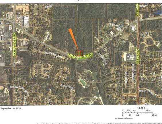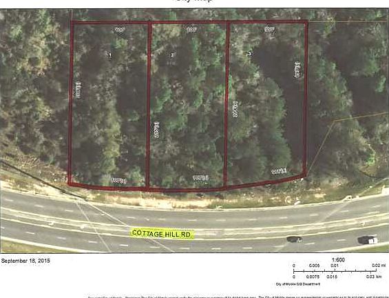 300 Ft front footage on Cottage Hill Road. See attached plat. Property is just East of Schillinger Road with heavy traffic. High visibility on 5 lane highway. Public sewer & water at the property.