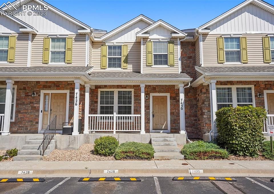 THIS BEAUTIFUL TOWNHOME IS LOCATED CLOSE TO FT. CARSON. IT FEATURES A LARGE MASTER SUITE WITH A WALK IN CLOSET AND ATTACHED BATHROOM. THE UPSTAIRS ALSO FEATURES AN ADDITIONAL LARGE BEDROOM. THE SPACIOUS EAT IN KITCHEN INCLUDES BLACK APPLIANCES, KITCHEN ISLAND, AND WALKS OUT TO OPEN GREEN SPACE. CARPET IS ONE YEAR OLD. THE COUNTRYSIDE COMMUNITY IS CLOSE TO SHOPPING, DINING, SCHOOLS AND PARKS.