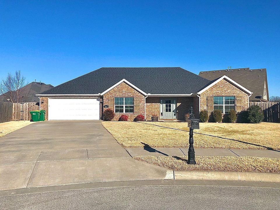 This beautiful home is walking distance to school, minutes to I49, Walmart Home Office, XNA airport, fine dining, shopping, and more. Boasting hardwood flooring in living areas and carpet in bedrooms, granite counter tops, gas range, large island, and a gas log fireplace in living room. Open concept living/entry/kitchen, master bath with double vanities, jetted tub and separate shower. Great fenced-in backyard with an over-sized patio. The neighborhood amenities such as pool and club house are the cherry on top of this charming house. Call today before it's gone! Tenant responsible for gas, electric, lawn care, water/sewer & sanitation. No smoking. $250 non-refundable pet deposit per pet.