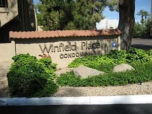 Architectural Digest would jump at the chance to display this gorgeous condo remodel. Just a few state of the art features offered are: Bosch ceramic top range, curved front water/ice dispenser refrigerator, granite counter tops, wood shutters, recessed halogen lighting, walk-in custom master closet, pedestal sink, large five foot master shower. No expense was spared to install top of the line wood type flooring throughout (see pictures). Move into this delightful two bedroom without lifting a finger. Convenient covered parking only steps from the front door. Located within walking distance of Old Town Scottsdale. Adjacent to the future canals hiking path project. Winfield Place offers mature landscaping with trees, fountains and flowers. Two heated pools, saunas, spa and clubhouse.