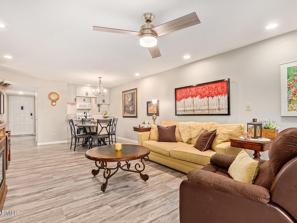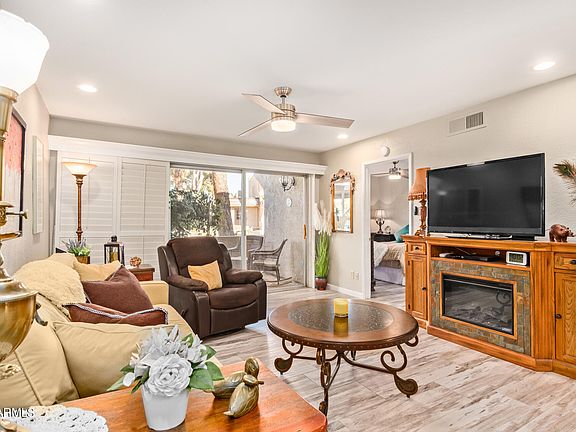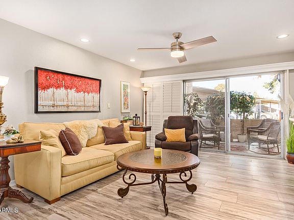 Welcome to Winfield Place condominiums located just moments from Old Town Scottsdale. **Location, Location, Location!** This ground level 2BR/2BA condo is set in one of the most desirable buildings backing a beautifully landscaped common area breezeway and is just steps from the community pool/ clubhouse. **Spacious, open, & bright floor plan. **Wood plank style tile flooring throughout condo.** Custom recessed lighting in great room. ** Remolded and expanded galley kitchen offers new grey shaker cabinetry including extra storage cabinets, granite counter tops and pantry. ** Bathrooms have also been updated with new vanities.**Primary bedroom boasts plantation shutters, step-in shower and walk-in closet.**Second bedroom boast a Murphy bed; to convey with purchase. **All appliances convey. Including the in unit washer & dryer** Condo comes with a 1-car assigned covered parking space.** Set an appointment to view this move in ready condo today. Winfield Place community boasts 2 heated pools, spa & sauna, clubhouse with billiard tables, community event space, television, computers, on-site property management, and bike house storage. Location, Location, Location -- located in the heart of Scottsdale; just moments from all the activities of Old Town Scottsdale - museums, music, the arts, dining, Scottsdale Fashion Square mall and more. Take the free Scottsdale trolley or enjoy a walk down the paved canal way.