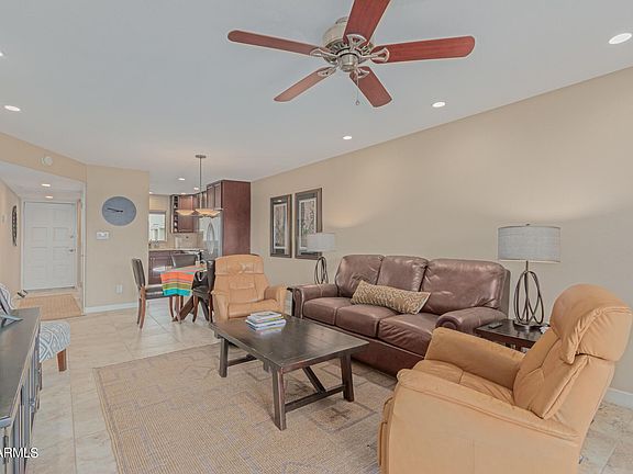 Turnkey in a desirable Scottsdale location! Nestled in the heart of Winfield, this exquisite 2-bedroom and 2-bath condo welcomes you with a neutral palette and upgrades throughout. Upon entering, you'll see the kitchen features rich wood cabinets, stainless steel appliances, and a convenient pantry for extra storage. All windows have custom shades and there's a washer and dryer in the unit for your convenience. New water heater and newer AC! The balcony overlooks green grass, walking paths, and a fountain. Take advantage of the community's pools, spa, community center, and more! Less than a mile from Fashion Square Mall, and close to parks, restaurants, shops, biking/walking paths, and golf courses. Furniture available by Separate Bill of Sale.