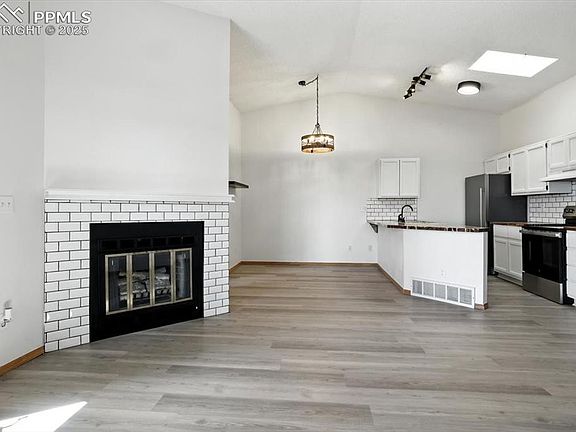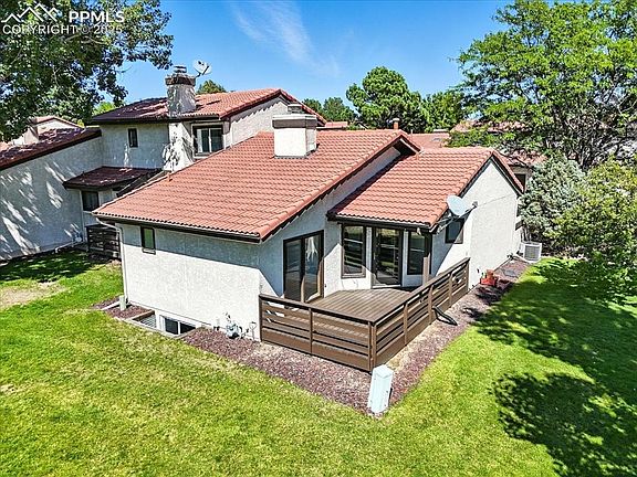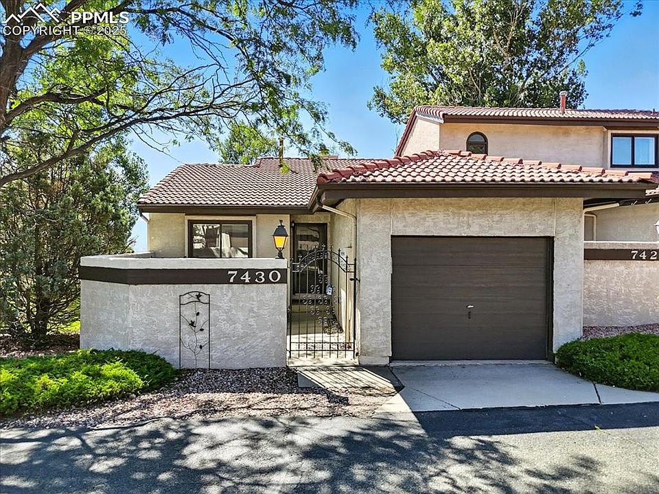 Discover this exquisite Mediterranean Spanish-Style townhouse, perfectly situated in the highly sought-after community of Scottsdale at Briargate. Enjoy the breathtaking views of Pikes Peak. The open-concept living area is perfect for entertaining. This beautiful home underwent a comprehensive renovation in August 2025, featuring a new large deck, interior paint, luxury vinyl plank flooring, new tile surrounding the cozy gas fireplace in the living room and new tile kitchen backsplash, carpeted basement stairs, new countertops, sinks, toilets, and lighting fixtures. A expansive breakfast bar in the kitchen offers a comfortable space for eating or cooking, with natural light provided by a skylight. The primary suite boasts a private bathroom and walk-in closet. This home's appeal is further enhanced by an unfinished basement, offering a blank canvas for personalized expansion and customization. Additional features include A/C, washer & dryer, attached garage and an extra refrigerator in the basement. Act now to make this property yours!