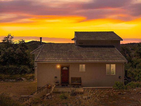 SOLD OFF-MARKET - Entered for Comparable Sales Data Only. Your secluded, off-grid mountain hideaway awaits! Situated on nearly 5 ½ acres and comprised of two legal parcels, this 1,251sf custom home provides an ideal locale for a weekend retreat or full-time residence. Elevated above a rich canopy of Native Oaks, this custom 2 bed, 2 bath home presents the fulfilling opportunity to live your home renovation dream. Enjoy the open concept primary living area, highlighted by soaring ceilings and decorative wood beam accents. Behold a majestic panorama from almost every room with natural light beaming through expansive view windows. Curl up on a cool day by the country-style wood burning stove or bask in the sun on the view deck. The comfortable and well-designed living concept flows into a sizable kitchen with ample cabinetry and countertops. A beautiful wood staircase beacons you to the second story primary bedroom suite featuring floor to ceiling windows – a WOW factor capturing the breathtaking Westerly views! The secondary bedroom and guest bathroom are conveniently situated on the main living level with a stairway leading down to a two-car garage with laundry. Plenty of space to add an additional abode, outbuildings or simply enjoy the beauty of the nature-scape & abundance of wildlife. Experience self-sufficient and sustainable living with a private solar electric system. Water service for the house is provided by Cuyamaca Water District with a private water well for irrigation or backup. Water infrastructure throughout the property make this a gardener’s delight with raised garden beds, several water spigots, 2,500 gallons of household water storage, and any ideal climate and elevation to grow a variety of plants or start your own orchard. At approximately 4,200 ft elevation, enjoy four seasons with winter snowfall, crisp autumn days, prolific springtime blooms, and warm summer days. Built with fire resistance in mind, the stucco siding and concrete tile roof along with an additional 10,000-gallon water storage tank provide for fire prevention. Located in the gated Cuyamaca Woods neighborhood minutes from nearby Lake Cuyamaca, Rancho Cuyamaca State Park and Cleveland National Forest where recreation abounds for the outdoor enthusiast. Just a short drive away lies the historic town of Julian; a popular get-a-way. There are many fine restaurants and lodging accommodations in the area. Wineries, art galleries, music and shopping, and many enjoyable venues from which to discover the fine local artists. Major shopping and resources are no more than 35 minutes away with the San Diego metropolitan and beautiful beaches only a one hour’s drive. A rewarding escape with great potential - enjoy the quiet, country setting and make this your new home! * Seller may carry with acceptable terms and approval of buyer's creditworthiness.