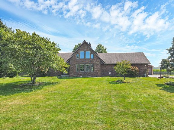 Welcome to 7430 Richardson Rd! This custom built home is situated on a sprawling .85 acre property, offering a perfect blend of comfort and functionality. With 3 bedrooms and 2 full bathrooms, this home provides ample space for both family living and entertaining guests. Well appointed kitchen, quartz countertops w/ eat-in bar space, flowing into a 2-story family room w/ a brick wood burning fireplace, plus an abundance of natural light from skylights. The well-designed layout includes a partial basement, offering endless possibilities for storage, recreation, or a home gym. The attached 2-car garage and large detached garage offer plenty of storage space. The covered back deck boasts beautiful views of the open, fenced in back yard, and endless field. See A2A remarks for more info!