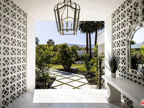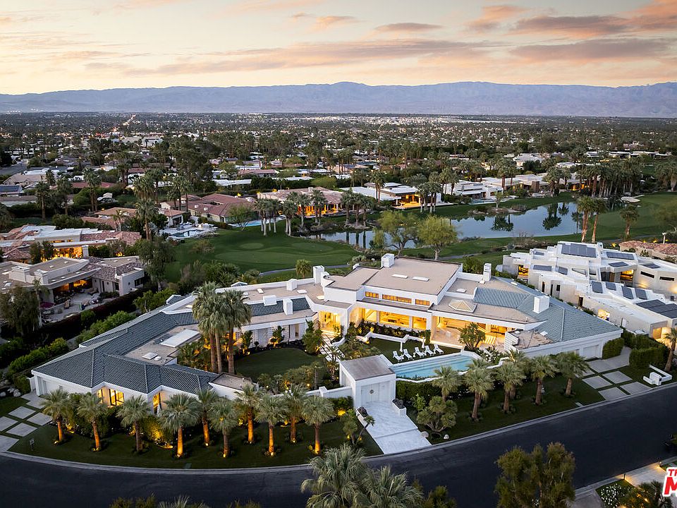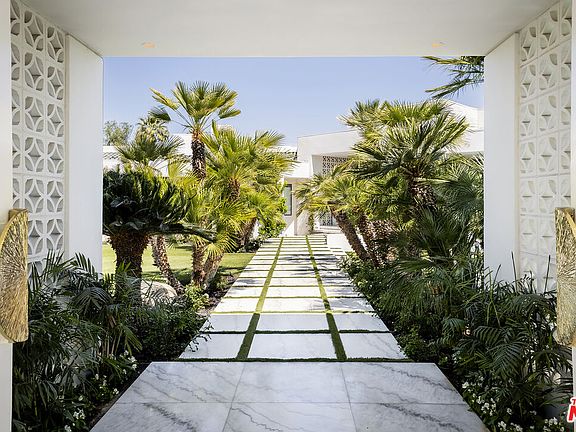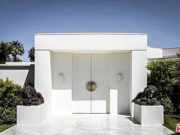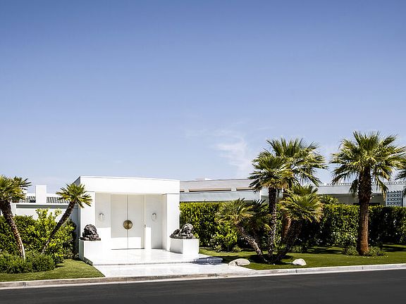 Commanding one of the most significant and private double lots within the esteemed Vintage Club ranked the #1 Platinum Club in California and #3 in the nation this extraordinary estate is a once-in-a-generation offering. Reminiscent of the iconic Sunnylands estate, it embodies a rare blend of timeless elegance, architectural presence, and effortless livability. Spanning grand proportions yet designed with intimacy in mind, the home adapts seamlessly to any lifestyle. Whether serving as a serene personal sanctuary, hosting family gatherings, or entertaining on a large scale, the residence feels perfectly proportioned at every turn. Set against a backdrop of panoramic golf course, lake, and mountain views, the grounds offer absolute privacy and resort-level amenities. A hotel-sized pool, expansive lawns, rare specimen palms, mature citrus, and hundreds of Pope John Paul roses create a lush, tranquil atmosphere evocative of classic desert estates. At over 16,000 square feet, the interiors have been completely reimagined with uncompromising attention to detail. The primary suite is a private retreat, featuring nearly 2,000 square feet of custom wardrobe space and a luxurious bathroom clad in rare vanilla onyx. Six additional ensuite bedrooms, each appointed as a junior primary, offer exceptional comfort and privacy. Two detached guest houses provide independent living spaces, one with a full kitchen, both with private terraces. Uniquely positioned within The Vintage Club, this is the only residence to offer a second-story outdoor living area comprising a refined sitting space and open-air deck with sweeping views of the lake and Chocolate Mountains, further distinguishing it within this prestigious community. A dedicated entertainment level, inspired by the glamour of the Beverly Hills Hotel, includes a full bar, state-of-the-art screening room, kitchen, game lounge, pool table, gym, and steam room creating an immersive experience that rivals any private resort. With over 4,000 square feet of covered terraces and a private upper-level deck overlooking the lake and par 3, the home is designed to celebrate the beauty and serenity of its surroundings. Every finish, from solid marble vanities to the finest architectural materials, speaks to the estate's unmatched quality. Truly irreplaceable in scale, setting, and execution, this is more than a residence it is a legacy.