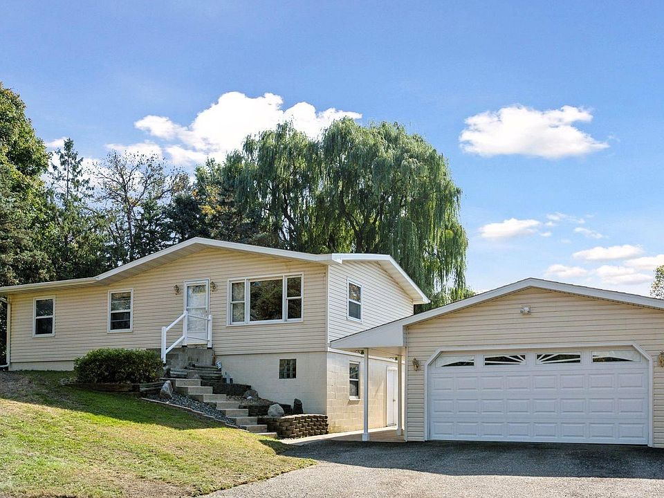Nestled on just over an acre with beautiful mature trees, this 3-bedroom, 2-bath walk-out rambler offers space, updates, and comfort. The main level features three bedrooms, a full bath, and an open layout connecting the kitchen, dining, and living areas. A patio door and side entry lead to a generously sized deck, recently stained and perfect for relaxing or entertaining. The lower level has been recently finished with new carpet and fresh trim, offering a large family room, a ¾ bath, and a versatile bonus room that could easily serve as a fourth bedroom. Outside, the detached 2-car garage includes a covered concrete patio beneath the extended roofline—an ideal spot for outdoor gatherings. With over an acre of land, there’s plenty of room to explore, play, or simply enjoy the natural setting.