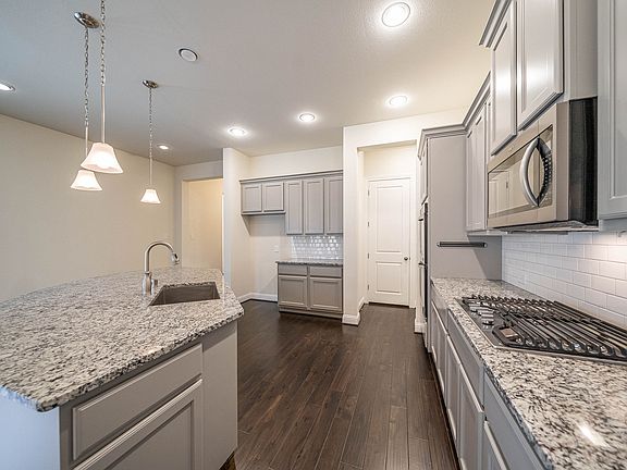 Immaculate 3 bedroom, 2.5 bathroom, single-story home featuring a 2-car attached garage and a shaded front porch! Inside, you'll find high ceilings, recessed lighting, large windows throughout, wood flooring, a fireplace in the living room with an exposed beam ceiling, a dining area, and a utility room with built-ins. The gorgeous kitchen boasts a sprawling breakfast bar island, granite countertops, a subway tile backsplash, ample cabinet space, and stainless steel appliances including double ovens while the primary bedroom features dual vanities, a garden tub, an oversized shower, and a walk-in closet. There's carpet in the secondary bedrooms, and the backyard has a covered patio, lots of green space, and no back neighbor. This home is located in the master-planned community of Augusta Pines which offers a golf club, trails, lakes, a pool, tennis courts, and proximity to TX-99!