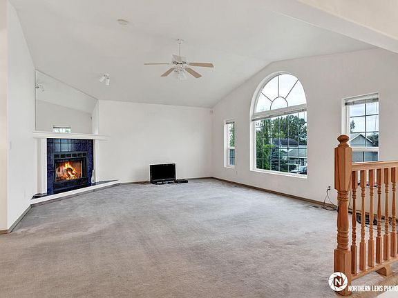 Keep your toes warm by the fireplace & your car snow-free in the garage! Nice bank of West facing windows lets the sunshine in! Great location along Spruce Street Trail. Quiet cul-de-sac setting. Fully fenced back yard with a huge rear deck (Apx. 8'X 40'). Perfect for the evening BBQ! Driveway light posts decorative only, not operational.