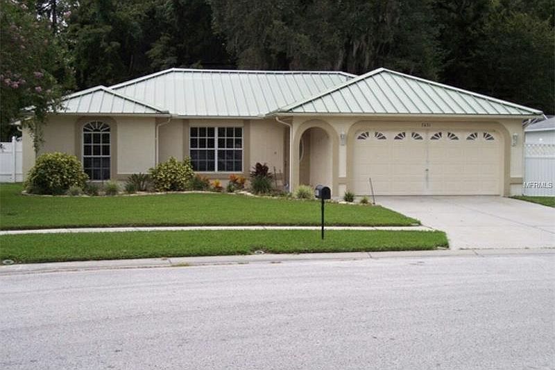 AWC - Taking Backup Offers This is an absolutely wonderful, one of a kind, 3 br 3 bath 2 cg home conveniently located in New Port Richey. The home is nestled in a quiet community on a private dead-end/cul-de-sac road. The homes features are amazing. And, as an added bonus NO DEED RESTRICTIONS!! The homes appeal starts with crisp and manicured landscaping the covered entry way and capped with a long lasting metal roof. Inside you find an immaculate main living area with integrated living room, dining room and kitchen that has neutral tile throughout. The kitchen offers a contemporary flair with plenty of wood cabinets and counter space along with stainless steel appliances. There is also an in wall two-way fish tank to put an exclamation point on this area of the home. There are 3 bedrooms 2 of which are master suites. Master Suite 1 is large and has a private bath with a stall shower. Master Suite 2 is an oversized bedroom with French doors leading to the covered lanai. There are dual walk-in closets, a view of the fish tank, dual vanities, and a rectangular walk in-stand up shower with a custom ceiling mount 3 headed shower. The home is situated on a private lot backing up to woodlands and offers an ample and fenced back yard, an exterior and exposed sun deck with gazebo and a built in dry bar making this a perfect entertaining spot. There is also an extra large covered lanai with wood accented ceilings and a built-in spa. You do not find amenities in a home of this price range with the fit and finish this house possesses.
