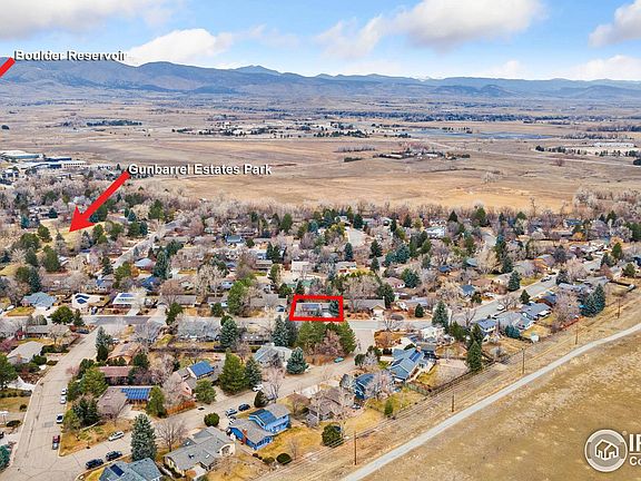 Discover a unique living experience in the heart of historic Gunbarrel Estates with this charming ranch home nestled on a generous quarter-acre lot. As you enter, you're greeted by an ambient interior that harmoniously combines modern elements with rustic touches. One of the home's highlights is the enclosed porch/sunroom, where wood ceilings and a brick wall accent create an inviting space for year-round enjoyment, courtesy of its own heating and A/C system. The living area, centered around a cozy brick fireplace, offers a warm and inviting atmosphere perfect for relaxing and entertaining guests. This space seamlessly flows into the spacious kitchen that features modern appliances, tiled backsplash, and even a dedicated work/study area to ensure that multitasking is a breeze, whether you're preparing meals or catching up on emails. Accommodations include three well-appointed bedrooms, including a primary suite complete with its own ensuite bathroom. Adding to the home's appeal is the finished basement, which presents an opportunity for rental income or multi-generational living. This lower level features its own living space, kitchen, laundry area, and a bedroom suite for complete independence and privacy. Outside, the expansive, fenced backyard is a private haven, surrounded by mature trees and offering views of Mount Meeker from the concrete patio. The yard is complete with raised garden beds, inviting you to cultivate your own vegetables or flowers. Solar panels installed on the property ensure energy efficiency and contribute to lower utility costs. Enjoy access to the picturesque Rocky Mountains and a plethora of outdoor recreational activities, including hiking, biking, and proximity to various parks. Enjoy the perfect balance of serene living with convenient access to Boulder, Longmont, and all the area's amenities.