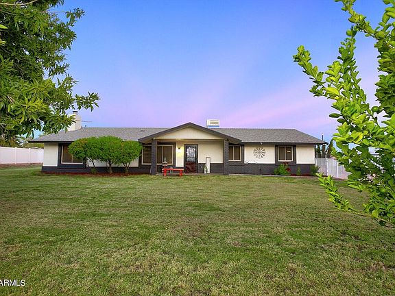 A Beautiful home situated on 1.9 acres with plenty of room for your toys and horses with great views of the white tank mountains. The exterior features new paint, a new Bosch AC Unit, a detached 2 car garage/shop with 50amp hookup great for RV's or electric car charging station, a storage shed, horse stalls, grazing fields, and don't forget about the stunning backyard with updated sparkling pool, and an extra-large covered back patio for entertaining.