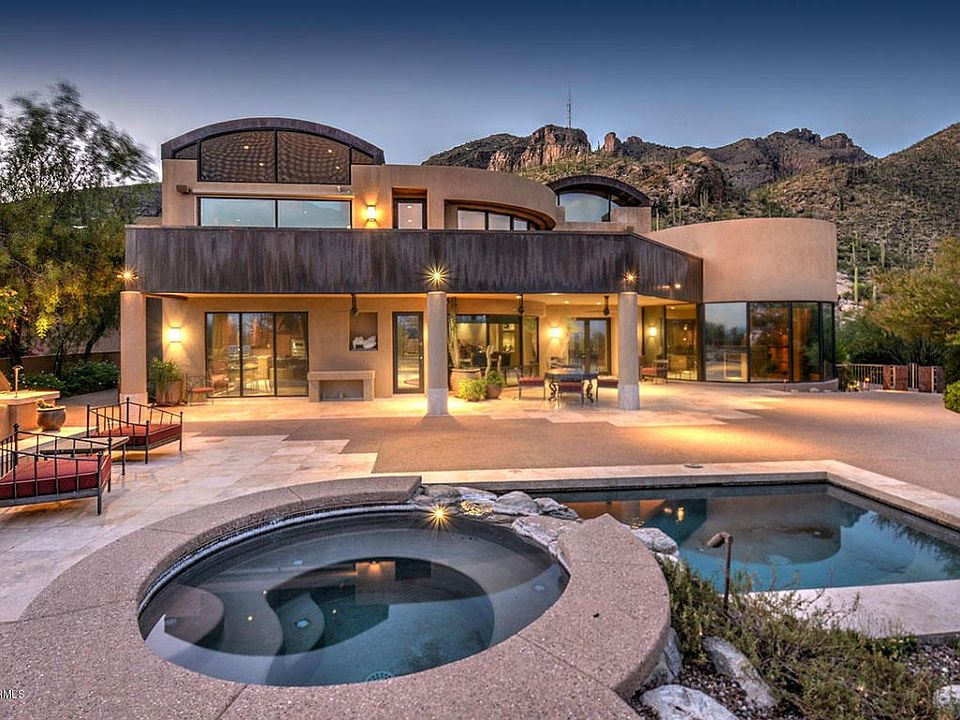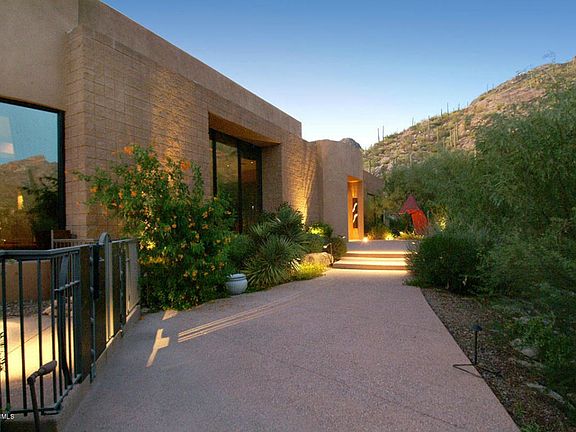 Fabulous Contemporary home with 24 foot soaring ceilings, travertine flooring thru-out. 3 bedrooms including wonderful master suite with his and her bath and closets plus exercise room. Chef's kitchen with top of the line appliances, granite counters and large island. Enjoy movies in private home theatre. Outdoor living at its best with pool, spa, several covered patios, putting green, 4 car garage all on 3.3 acres in prestigious guarded community surrounded by the Catalina Mountains and twinkling city lights.