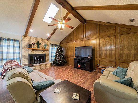 Come take a look at this beautiful home.. ready to make your own! Inviting open floor plan with gorgeous vaulted ceiling, skylight, wood burning fire place and cozy feel. No carpet, all wood laminate and new tile floors throughout, New AC unit under warranty, even second bedroom has nice walk in closet. Master suite with separate vanities, new custom separate shower, garden tub, and plenty of space! Enjoy the Nice covered back patio and yard! Easy access to the interstate makes this a great find, Don''t miss out on this one!
