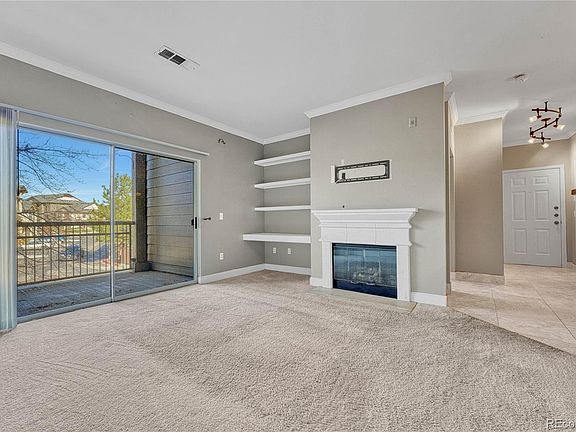 Located in one of Ken Caryl's top condominium developments, this lovely residence has everything you need! As you enter the home after parking in your gated, exclusive parking space, you're greeted by a spacious dining room, kitchen, and living room with a large, covered balcony and additional storage! The kitchen is complete with well-kept appliances, large-format tile flooring, track lighting, high-quality cabinetry, and a pass-through bar-height counter into the living room. Adjacent to the kitchen is a generously-sized dining space with additional built-in bar cabinet and countertops; perfect for mixing drinks or entertaining guests. The large living room features built-in shelving atop a built-in desk space, a gas log fireplace with a gorgeous stone-look surround, and wide sliding glass door to your expansive covered patio! The roomy primary suite features a walk-in closet and an attached full bathroom with a large corner vanity. Across the unit is a secondary bedroom and full bathroom, creating ample space for an office or a second resident. The convenient laundry room has plentiful space for comfort, and comes with an included modern washer/dryer set! The Fallingwater community is located just minutes from C-470, making travel or commutes a breeze. Nearby are tons of restaurants, entertainment, parks, shopping, and more; all within the thriving, nationally-recognized Jefferson County School District. HOA rental restrictions may apply. Contact listing broker for more information.