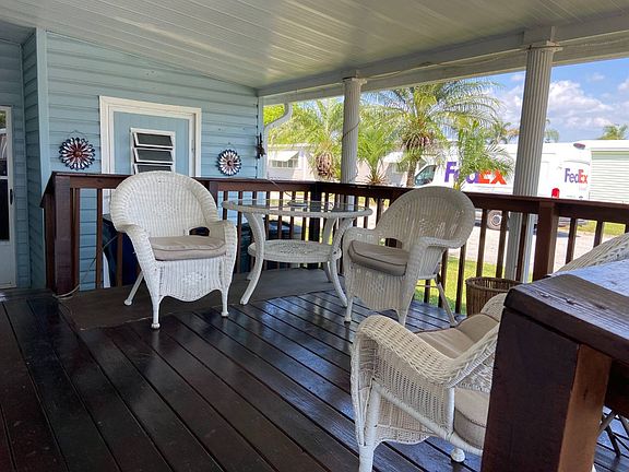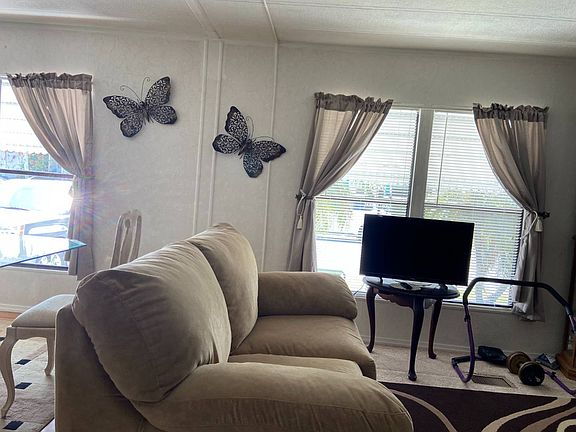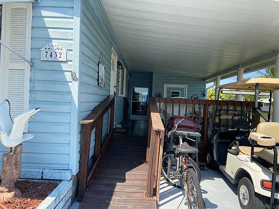 This is a mobile home for sale in a pet friendly, 55+ community on a rented/leased lot. Check out this updated 2BR/2BA mobile home with a ramp for easy access through the carport. The newer 2016 A/C keeps everything cool! The kitchen and dining area have newer bamboo floors. There is ample storage in the updated kitchen, a custom backsplash, a tray ceiling and a ceiling fan. There is a formal dining area with a built in hutch and ceiling fan. The open living concept has room for living, dining and entertaining. The living room has laminate floors and a mirrored wall. There is a 10 x 16 side set screened lanai with carpet and a 12 x 11 covered, outdoor deck for watching the world go by. The master bedroom has carpet, ceiling fan, textured wall board walls, a walk in closet and a master bath en suite. The master bath has vinyl flooring, wallpaper/panel walls, laminate counters, a single sink vanity and a walk in shower. The guest bedroom has carpet, a walk in closet, ceiling fan and panel walls. The hall bath has vinyl floors, a single sink vanity, wallpaper/panel walls and a shower/tub combination. There is a carport for parking 2+ cars tandem style and a shed on the back. The shed has washer/dryer(included in the sale) hookups and extra storage. The lot rent is $996 and includes water, sewer, trash, lawn and all the amenities listed below. Colony Cove has been named 'Best Retirement Community' six years in a row by the Herald-Tribune of Bradenton. Colony Cove 55+ retirement mobile home community has a wealth of amenities designed to keep up with your active lifestyle. Located in Ellenton, FL, between Tampa and Sarasota/Bradenton with easy airport access, the Colony Cove community features beautiful banquet rooms, nice billiard facilities, a private boat dock with nominal fee marina slips for any size boat (with access to Gulf of Mexico for salt water anglers), and five spacious clubhouses. It is just a 30 minute drive to over 7 miles of free public beaches; sand, shells & ocean for you to enjoy at will! This golf cart community offers cruise ship style entertainment. There are great fishing opportunities and huge game rooms and well stocked libraries provide great diversions. Take a dip in one of the five heated swimming pools, or challenge your friends and neighbors to a friendly match on the shuffleboard courts, tennis courts or pickle ball courts. Colony Cove also offers on-site management, laundry facilities, a woodworking shop, two fitness centers and a dog park to make your active lifestyle more enjoyable. Come and go as you please throughout the year without worry with professional courtesy patrol in marked vehicles 24/7. Florida MH Sales, LLC cannot guarantee or warrant the accuracy of this information, measurements or condition of any property. Measurements are approximate. Lot rent is subject to change.