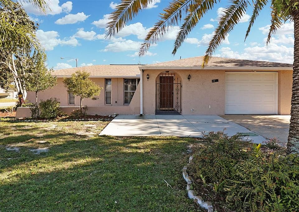 This large, corner lot Mediterranean style home boasts 3 bedrooms, 2 bathrooms, a 1-car garage, a screened-in back lanai, a front patio and a large fenced-in backyard, perfect for pets, family, and entertainment space. The kitchen comes equipped with granite counter tops and stainless steel appliances. The home was recently updated with a new roof (3 years old), hot water heater (2 years old) and A/C unit (2years old) for your convenience. It is nestled in the desirable, HOA-free Embassy Hills Community, close to plenty of schools, shopping, pharmacies, banks and local grocery stores. Seller will provide a $10,000 credit to the buyer at closing with an agreeable price. Additional funds can be used for closing costs, upgrades, or to buy down your interest rate.