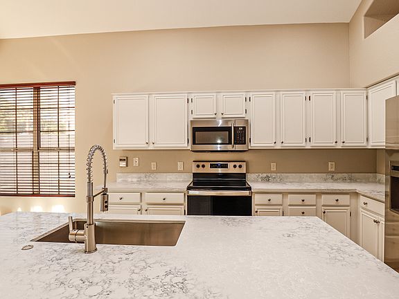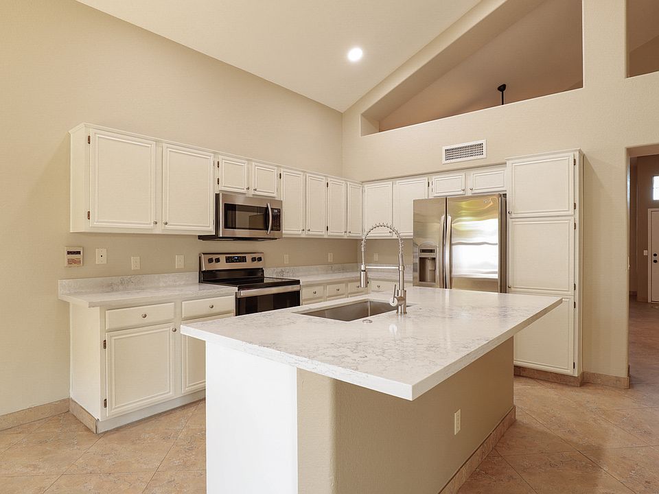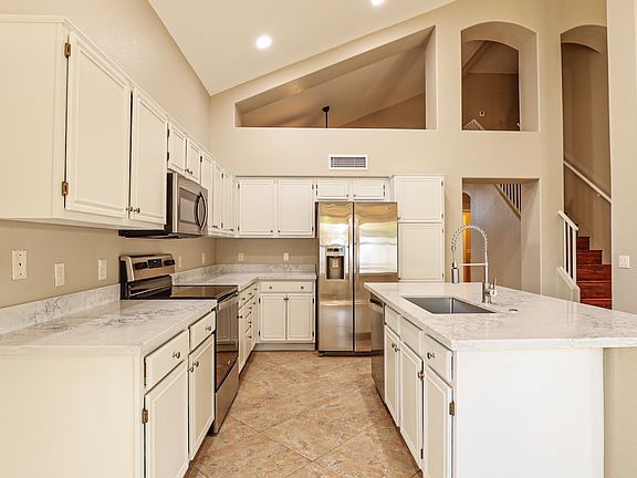 Welcome to your dream home in the highly sought-after Hillcrest Ranch! This stunning 4BR 2.5 bath home offers a North/South exposure & has just undergone a full renovation. The interior is freshly painted giving the home a fresh & bright feel. Home features vaulted ceilings creating a spacious & open floor plan. The kitchen features an island & breakfast bar & updated with brand new countertops, faucet, sink, range, dishwasher, and disposal. Cabinets repainted crisp white, providing a modern & sleek look. This split floor plan features a downstairs master bedroom & three bedrooms upstairs. The master bedroom boasts a split bath & shower. Backyard has a large, covered patio with mature trees. There is additional paved RV parking & gate. Renter is responsible for all utilities.