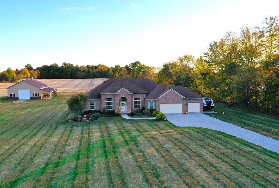 Welcome Home! Beautiful Brick Ranch on 25 Acres in Johnstown! Kitchen offers Island, SS Appliances, & tons of cabinet and counter space! Opens to spacious Living Room w/ fireplace... Main Floor Master w/ En Suite! Huge Basement is ready to be finished w/ Egress Window & plumbed for Bathroom... Relax on the back patio overlooking the private back yard! Massive 40x60 Barn w/ 12x60 Lean-To for storage and work space! Home Sweet Home!