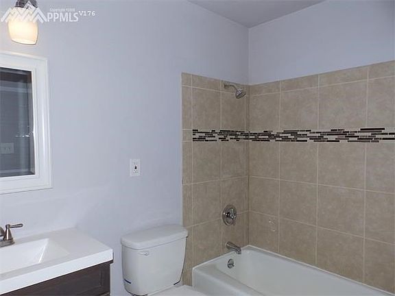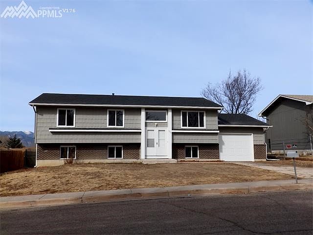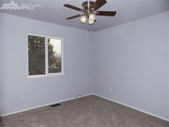 This 5 bedroom home features a new roof, carpet, paint and kitchen cabinets, granite counter-tops, new baths and fresh paint throughout. The kitchen is open to the dining room with a large window boasting Pikes Peak views. The kitchen has new appliances and new cabinets featuring soft close doors. Just down the hall are three bedrooms to include the master with private bath. All bedrooms have ceiling fans and new carpet. The full bath boasts a skylight. Downstairs is a huge family room, two more bedrooms and a 3/4 bath