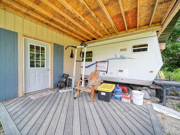 Welcome to 10.89 acres of pure leisure and recreation! This unique property is thoughtfully designed for entertainment and relaxation, featuring a camper that's been enhanced with a custom-built structure around it, creating a comfortable and versatile retreat space. Perfect for weekend getaways or gatherings, the setup offers shelter, shade, and a cozy atmosphere. Several outbuildings provide storage for equipment, hobbies, or outdoor gear, and a tractor with trailer, bush hog and back blade are included to help maintain the expansive grounds. With nearly 11 acres to explore, you'll have endless opportunities for bonfires, outdoor games, and making memories with family and friends. It's a private retreat oozing with character and charm.