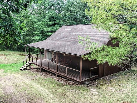 Perfect getaway in private setting and nestled in the pines and a cul-de-sac location in scenic Southern Huntingdon County. Rustic Cabin is on a rolling to flat 1.6 acre lot. Enjoy the nature and peace in gem! Home features open Great Room and 2 bedrooms plus loft., small shed.