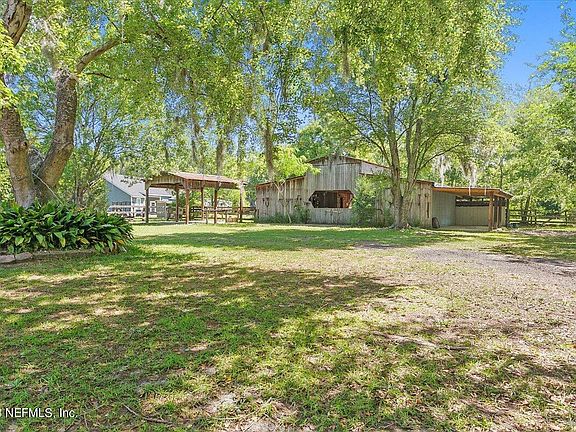 Right outside the city limits you will find this GEM! A little over 1 1/2 acres with a large barn and RV shelter on the back corner. Inside this beautiful home you will find a large kitchen and formal dining room for all your family gatherings. What a relaxing view from the breakfast nook for all those mornings drinking coffee. In the living room you will find a large space to relax and enjoy the wood burning fireplace on those random cold nights we have in Florida. The split floor plan of this 3 bedroom 2 1/2 bath offers an oversized master suite to include a large walk in closet, soaker tub, stand up shower as well as double vanities. The laundry room has plenty of cabinetry for all your extra supplies and even better if you need more room, right outside in the garage is a large storage room and a spare 1/2 bath. Off the back patio enjoy the birds and the jasmine blooming. Rocking chair and grandma's swing make this backyard the perfect area to watch the kids play and enjoy the spring afternoons with family.