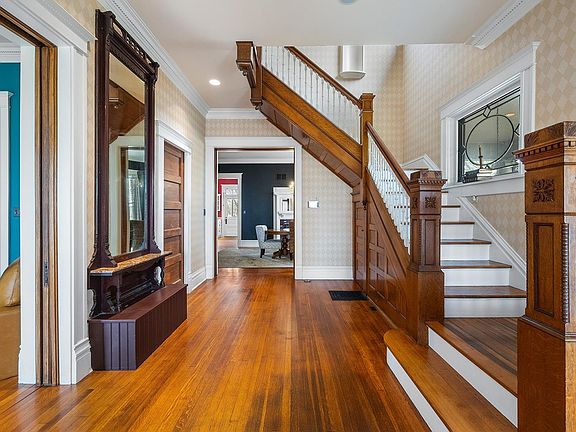 A Must See! This stunning 5 bedroom Victorian home offers a perfect blend of classic charm and modern convenience. Situated on almost 2 acres of land, this property boasts many features. Upon entering you will be greeted with two living areas, a formal dining room, perfect for entertaining. The kitchen is complete with a butlers pantry for additional storage and preparation space. The original hardwood floors throughout the home add a touch of warmth and character, while the crown molding adds a touch of elegance. The spacious bedrooms are complemented by walk-in closets. The partial finished basement offers additional living space, perfect for a home office, playroom or gym. Outside you will find a charming gazebo, perfect for relaxing and enjoying the landscaping that surrounds the property. The covered porch is the ideal spot to unwind and enjoy the peacefulness of the surroundings. This Victorian home embodies the timeless beauty and sophistication of a bygone era, while offering all the modern comforts and amenities that make it a great place to call home.