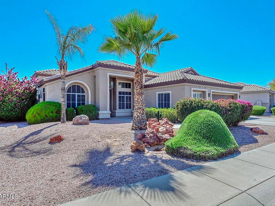 Beautifully REMODELED Shea Home with 3 bedrooms an office and a bonus room. High ceilings with gorgeous arches. Family room niches updated and added pantry. High end cabinet refacing with raised panels, soft close doors and pull out shelves Granite counters throughout and backsplash for a touch of elegance. Freshly painted inside and out within the last 2 years. Brand new carpet in the 3 bedrooms. Consistent tile throughout home. Primary bath has tiled shower and relaxing garden tub. Large walk in closet. Tranquil backyard with grass and 3 fruit trees. Honeysuckle that the hummingbirds and finches love. You can say hello to them from the primary bedroom! Great location close to the A+ schools. City maintained beautiful park. Move in ready. newer roof in 2021. Owner Agent